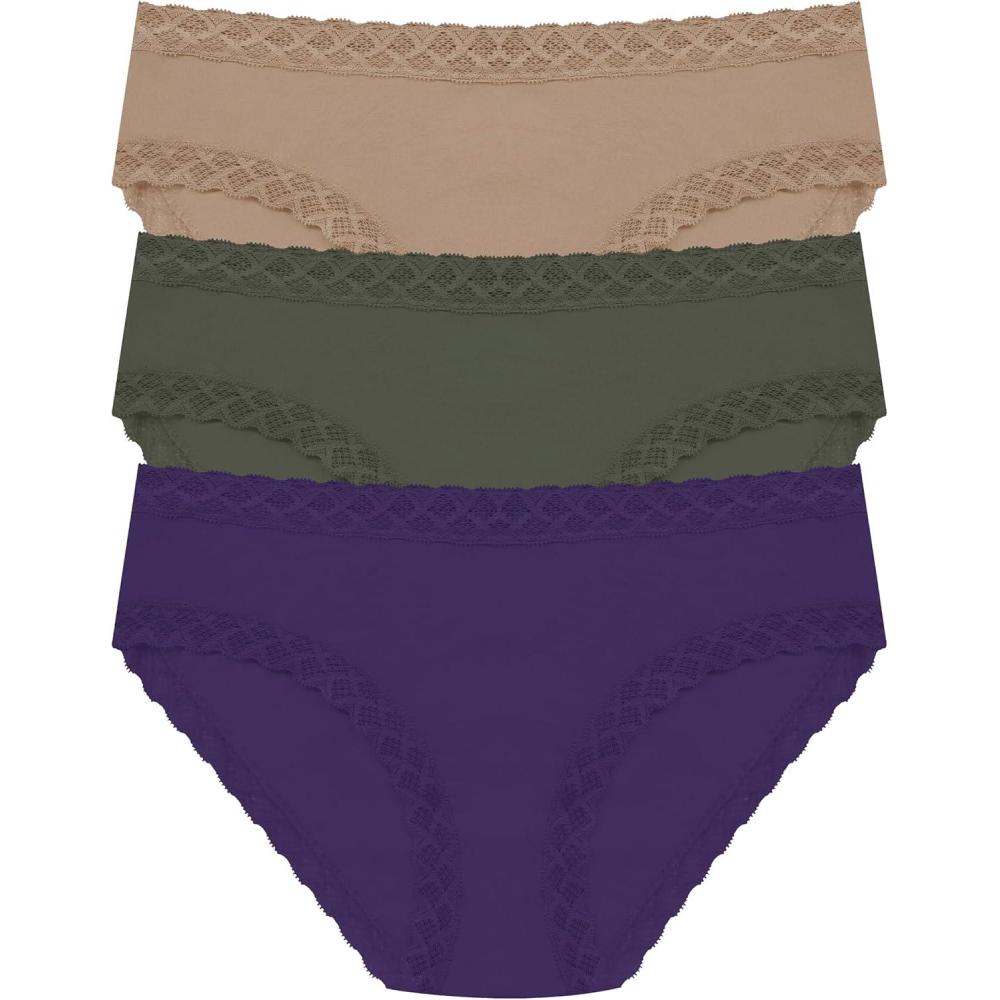 Natori Women’s Bliss Girl Brief 3-Pack(Vivid Grape/Flint/Cafe)